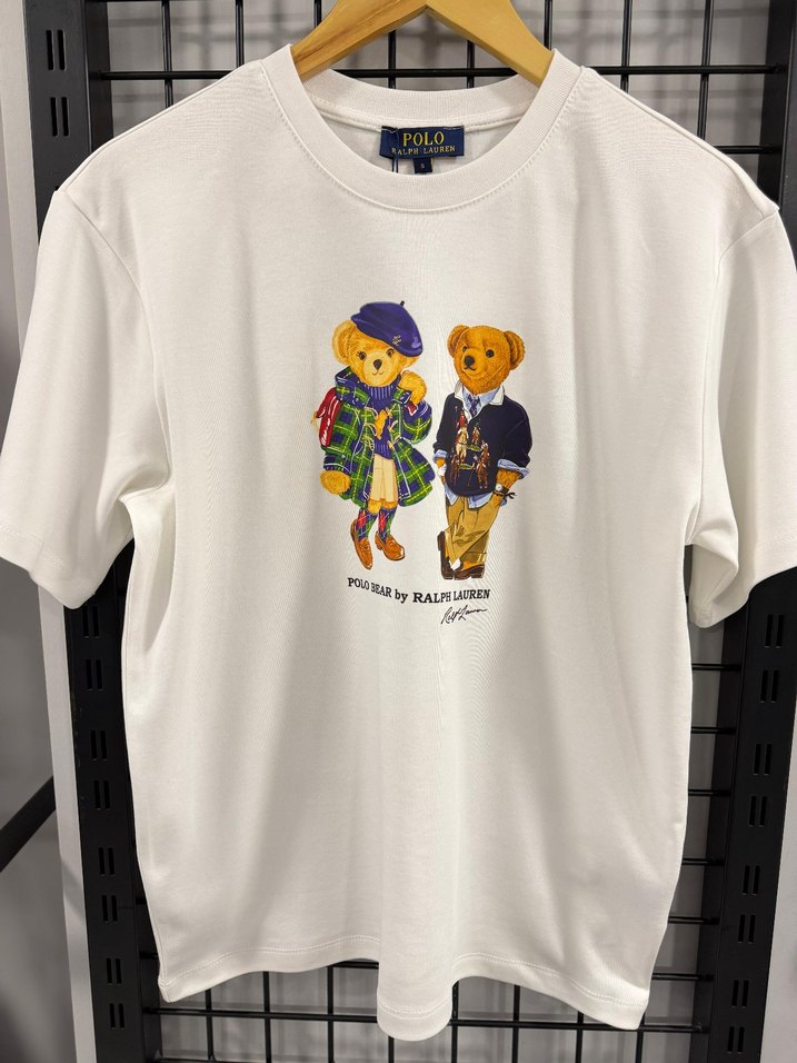 Polo Ralph Lauren markalı, pamuklu kumaştan, kısa kollu, baskılı ve rahat kesim beyaz tişört. Önünde stil sahibi iki ayıcık baskısı bulunur. S M L bedenleri mevcut. Etiketli üründür. imalattır.