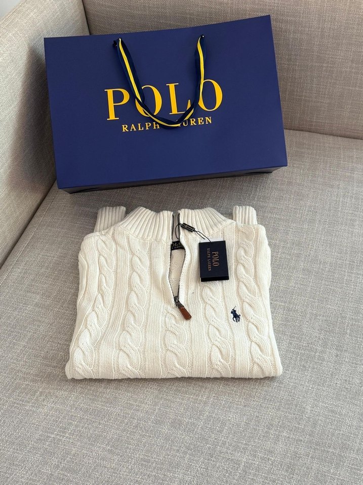Beyaz Polo Ralph Lauren Yarım Fermuarlı Kazak