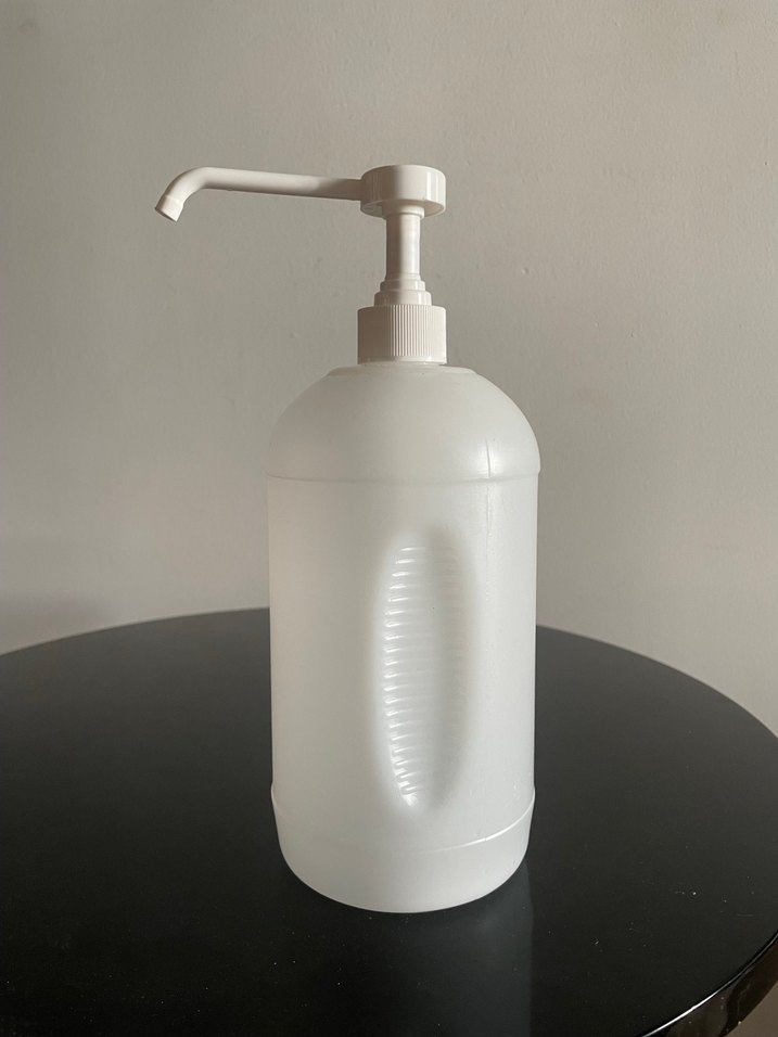 Plastik, 1100 ml. Hiç bir kusuru yok, bir tüketimlik kullanıldı. #PompalıDezenfektanŞişesi