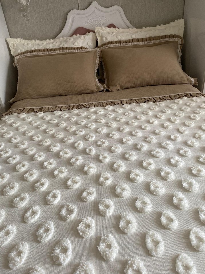 Beyaz Ponpon Desenli Yatak Örtüsü seti