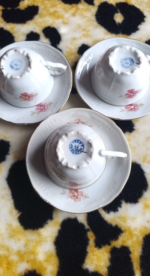 Pastel çiçek desenleri ve altın detaylı beyaz porselen çay fincanı ve tabağı seti. Her fincan uyumlu tabakla birlikte sunulur 3 fincan 4 tabak fiyat çok uygun ve son