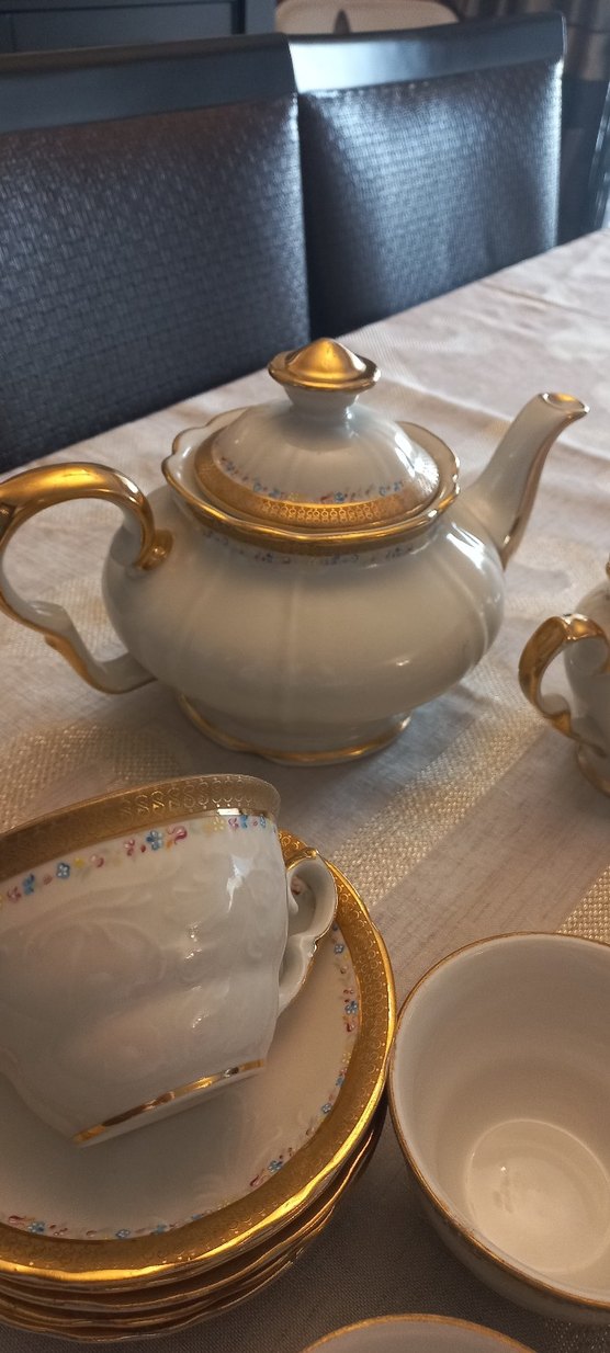 Pastel beyaz porselen çaydanlık, zarif çiçek desenleri ve altın detaylarla süslenmiştir. izmirde göztepedeyim elden satıyorum kendimde getirebilirim izmir içine☑️
