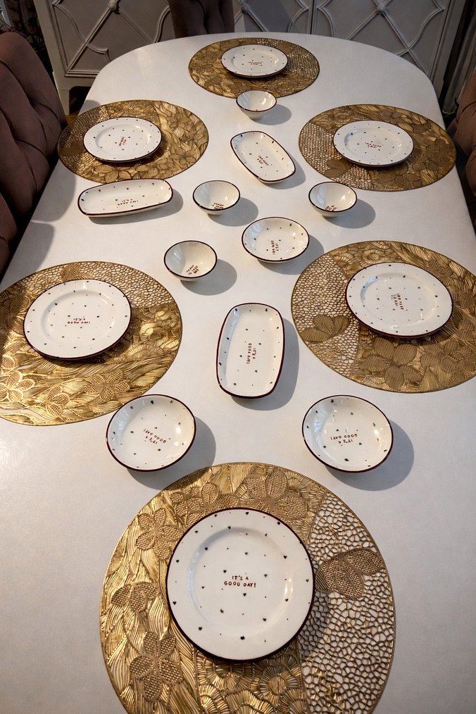 Küçük siyah kalp desenli beyaz porselen tabak seti. İnce kırmızı kenarlıklar ve motive edici yazılar içerir. Atıştırmalıklar için uygundur. 6 adet pasta tabagı 4 adet kayık tabak 4adet reçellik 3 adet peynır tabağı
