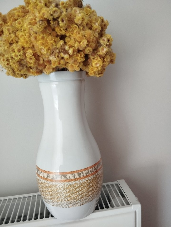 Orta kısmında pastel desenli bant bulunan beyaz seramik vazo, kuru veya canlı çiçekler için uygundur. 2li satılmaktadır yazdıgım tekli fiyatıdr