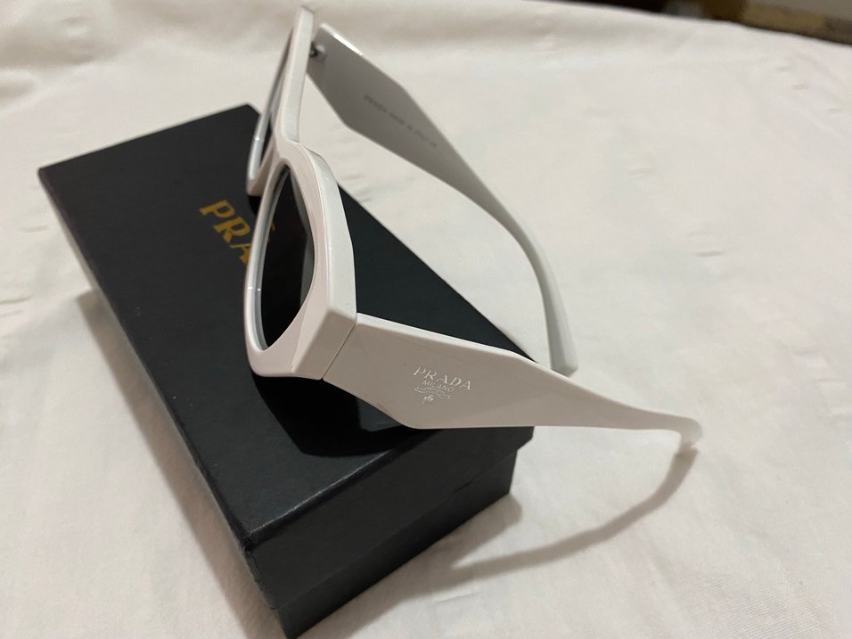 Minimalist ve sokak stili beyaz Prada kadın güneş gözlüğü. Avant-garde ve modaya uygun tasarımıyla zahmetsiz şıklık sunar. Kutusuz gönderim sağlanacaktır. Mendil içinde dahildir.