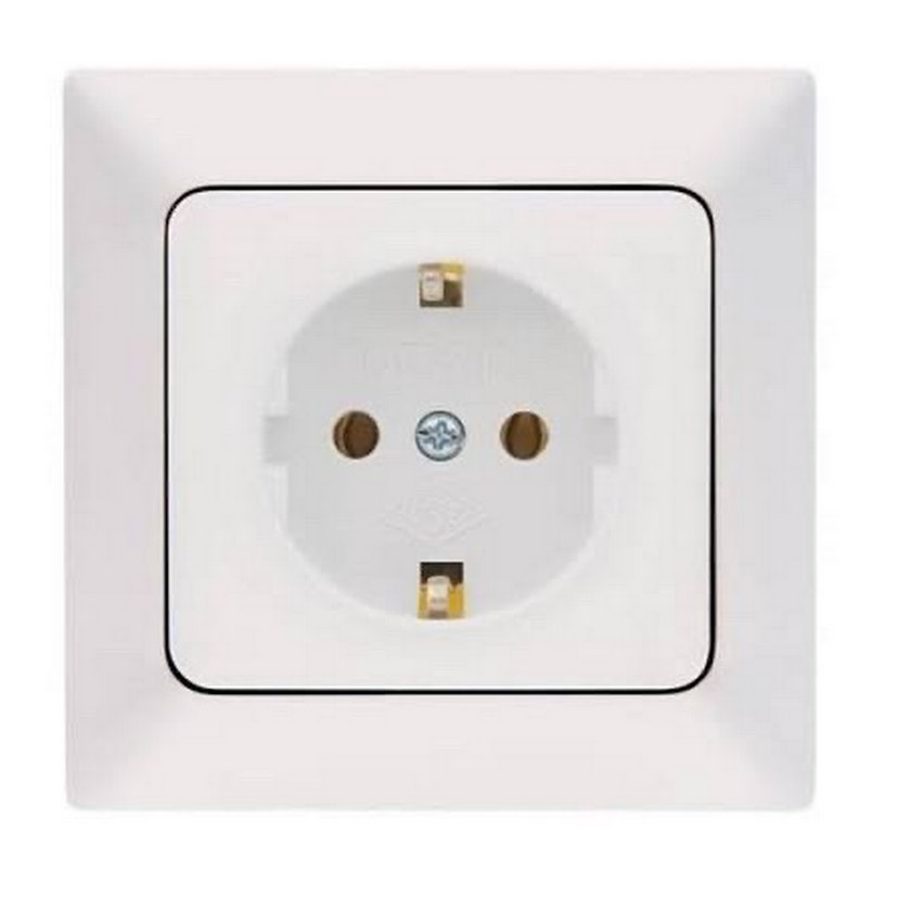 Standart güvenlik kapaklı beyaz duvar tipi priz, çeşitli fişlerle uyumludur. Elektrik bağlantıları için kullanılır. ⚡