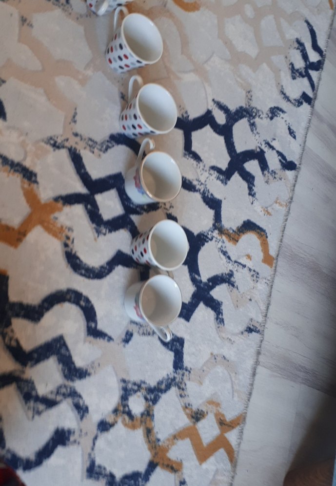 Renkli puanlı beyaz seramik fincan seti, içecek servisi için uygundur. Her fincan kulpludur. ☕