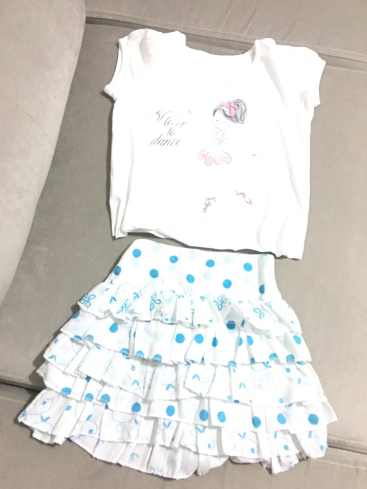 Tişört hediye Etek belde bir taraf lastikli 28-29 cm kadar esner Pamuklu, beyaz, pastel mavi puantiyeli, kat kat fırfırlı, kız çocuk için şık ve fit kesim etek. Tüm detaylar metre eşliğinde