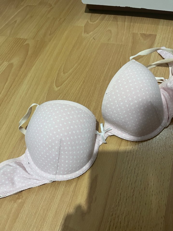 Beyaz renkte, pastel puantiyeli, minimalist tasarımlı ve rahat oturan sütyen. Klasik uzunlukta ve hafif bohem tarzda.