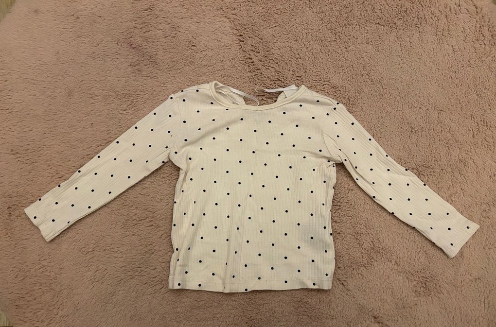 Beyaz Puantiyeli Uzun Kollu Kız Tişörtü