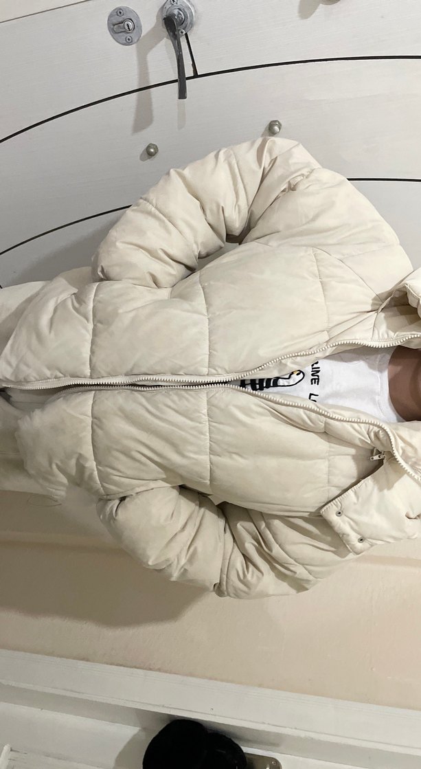 Beyaz puff mont, yüksek yakalı ve uzun kolludur. Midi boyda, vücuda oturan kesime sahip yumuşak ve sıcak kumaştan üretilmiştir. Günlük kullanıma uygun sade ve pastel renklidir. ❄️