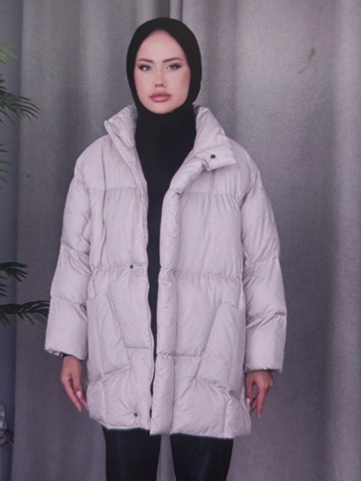 Beyaz Puff Mont, Yüksek Yaka, Salaş Kesim