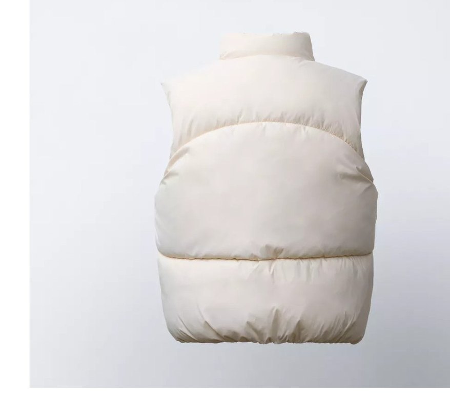Yüksek yakalı ve puff detaylı beyaz kolsuz yelek, yumuşak ve sıcak kumaştan üretilmiştir. Midi boy, dar kesim ve minimalist tarzda, günlük kullanıma uygundur.