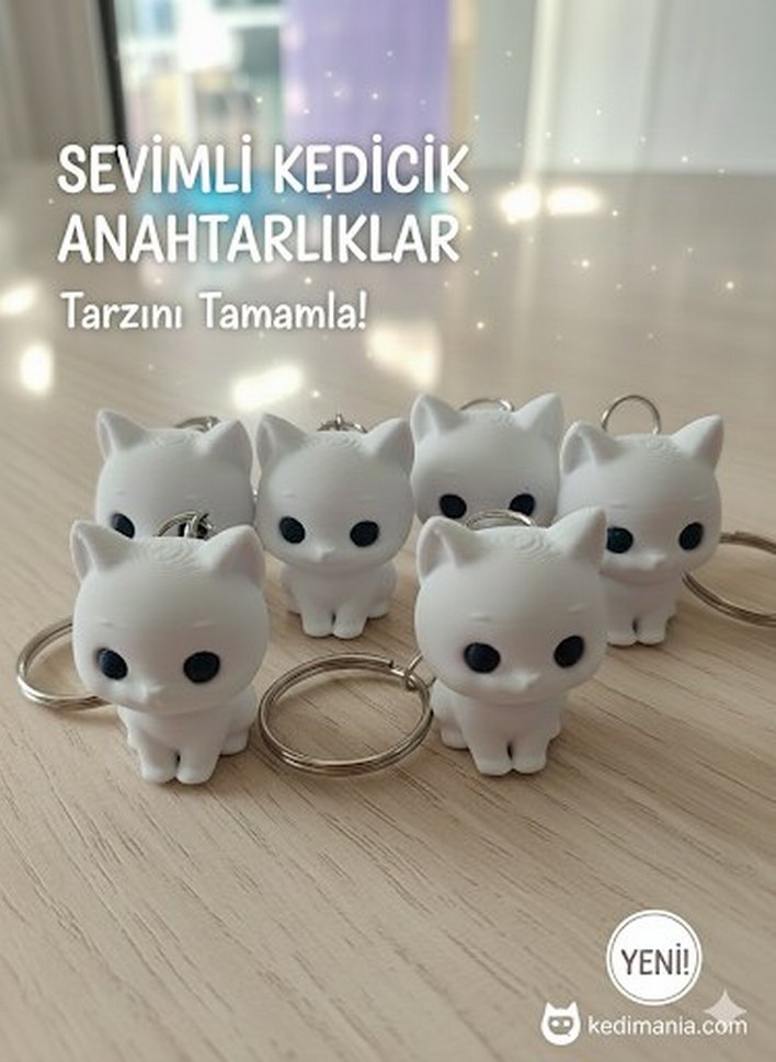 Beyaz renkli, pufflu ve sevimli minimalist kedi figürlü anahtarlık, anahtarlarınıza hafif gotik bir dokunuş katar.