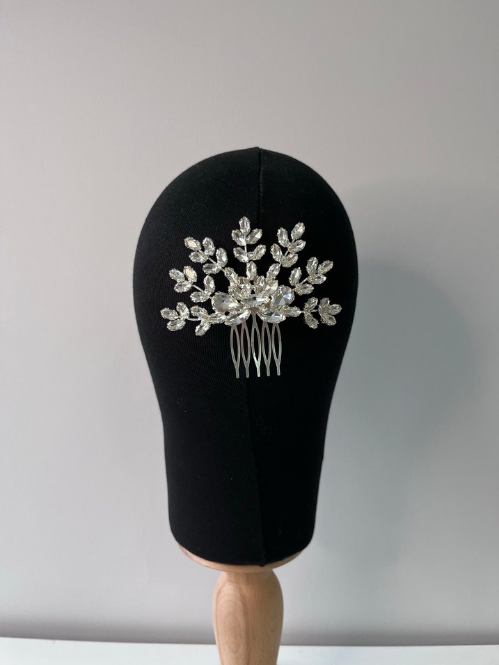 Beyaz cam ve pul detaylı saç tokası, minimalist ve çağdaş tasarımıyla klasik zarafeti yansıtıyor.