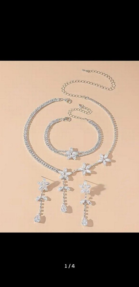 Beyaz Pullu Çiçek Desenli 3 lü Kadın Takı Seti