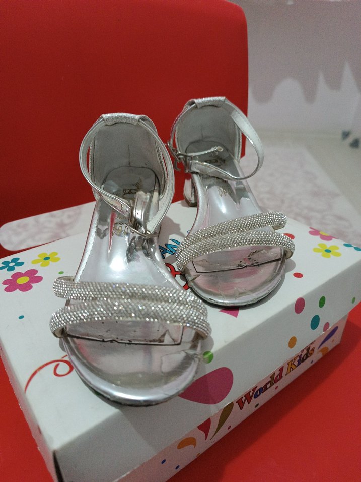 Metal malzemeden beyaz renkli, pullu detaylara sahip yüksek topuklu abiye ayakkabılar. Düğün ve özel geceler için şık ve çağdaş tasarım sunar.