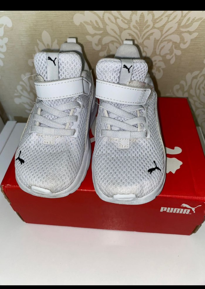 Cırt cırtlı, kauçuk tabanlı ve nefes alabilen file üst kısımlı beyaz Puma erkek çocuk spor ayakkabısı, trend sokak giyimi için uygundur. ♂️