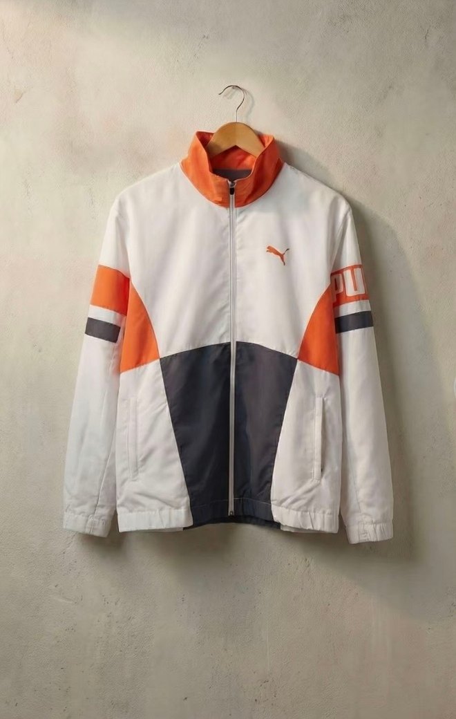 Bu erkek mont, yüksek yakalı ve fermuarlı ön kısmı ile uzun kolludur. Beyaz, turuncu ve koyu gri renklerde baskılı, yumuşak fleece kumaştan yapılmıştır. Outdoor kullanım için uygundur.