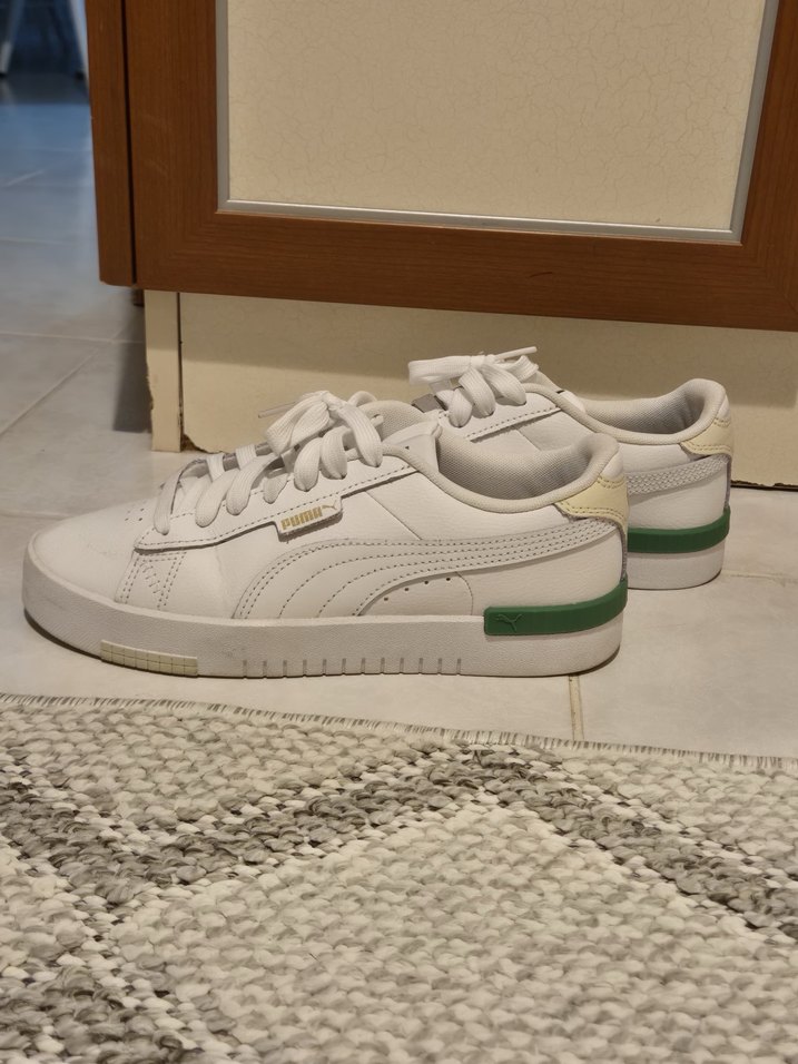 Beyaz Puma kadın spor ayakkabısı, trendy rahat sokak giyimi için uygundur. Pastel detaylı, desensiz tasarıma sahiptir. Çok az kullanılmıştır.