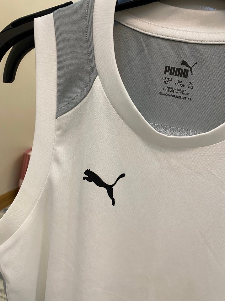 Beyaz ve gri detaylı Puma spor tişört. XS- S beden uyumlu Orijinaldir