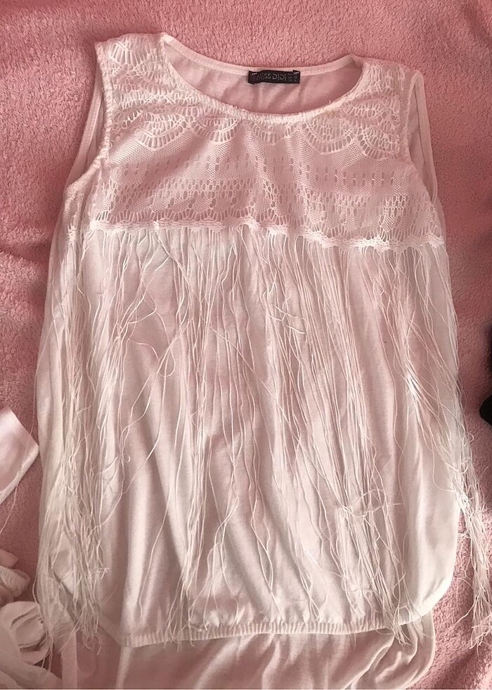 Beyaz Püsküllü Askılı Bluz