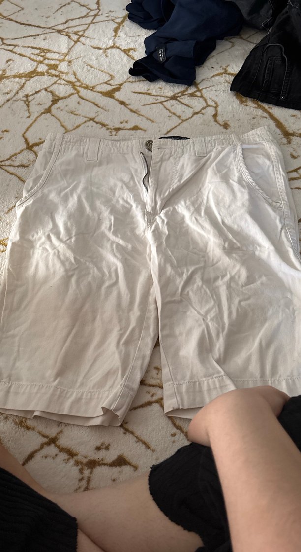 Beyaz pamuklu erkek bermuda şort, rahat kesim ve midi boy ile günlük sokak stiline uygun, zahmetsiz şıklık sunar.