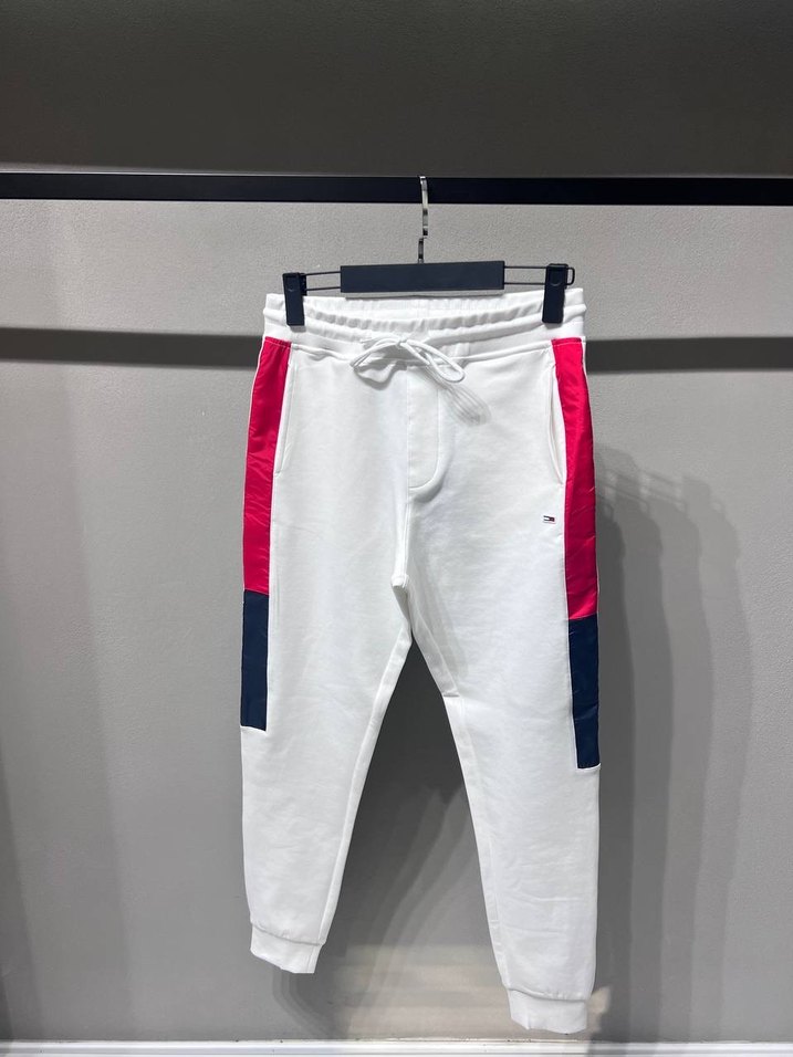 Kırmızı ve lacivert yan panelli, bağcıklı ve cırt cırt detaylı beyaz rahat kesim erkek eşofman altı. Yumuşak ve sıcak kumaştan, spor ve günlük kullanıma uygun. ♂️