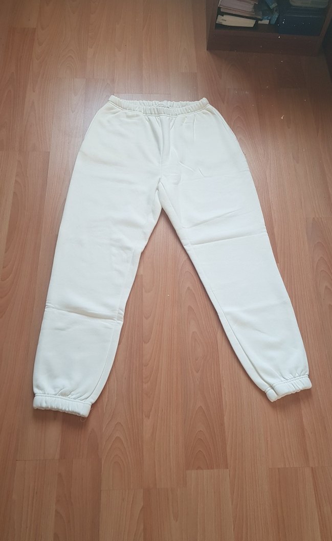 Beyaz Rahat Kesim Kadın Eşofman Altı