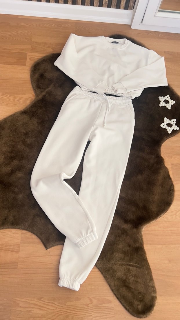 Yumuşak ve sıcak kumaştan üretilmiş, rahat kesim beyaz kadın eşofman altı. Normal boyda, günlük rahat kullanım için uygun. Çok şık kışlık sorunsuz s beden alan pişman olmaz bu fiyata başka yokkk