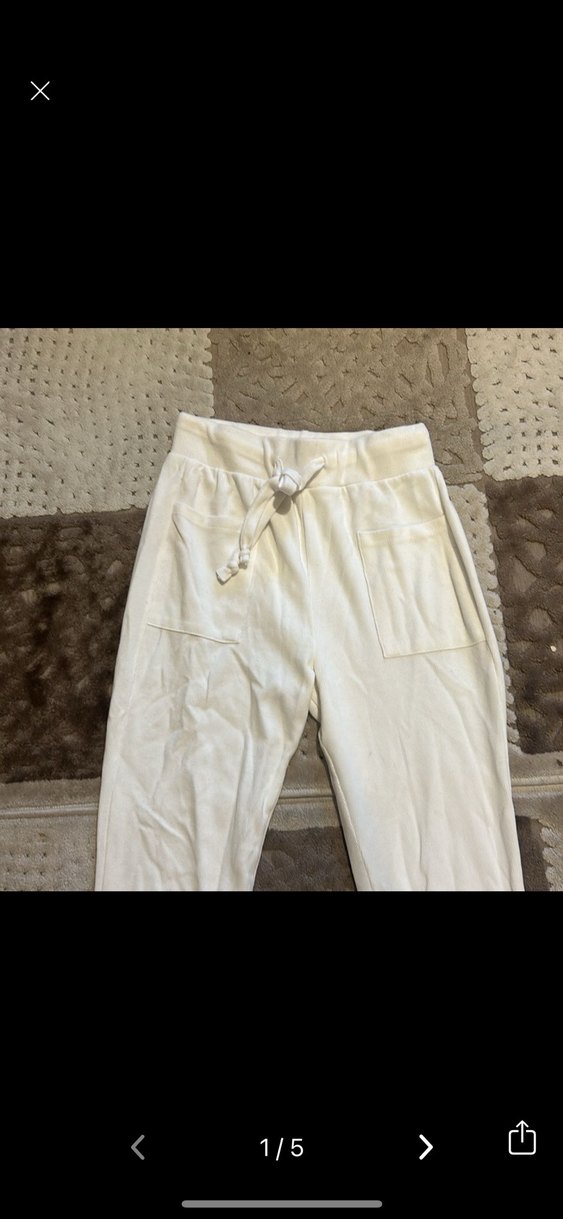 Beyaz kadın eşofman altı, rahat kesim ve midi boyda, yumuşak ve sıcak kumaştan. Belinde bağcıklı, önünde büyük cepler bulunur, gündelik şıklık ve sokak tarzı sunar. ️