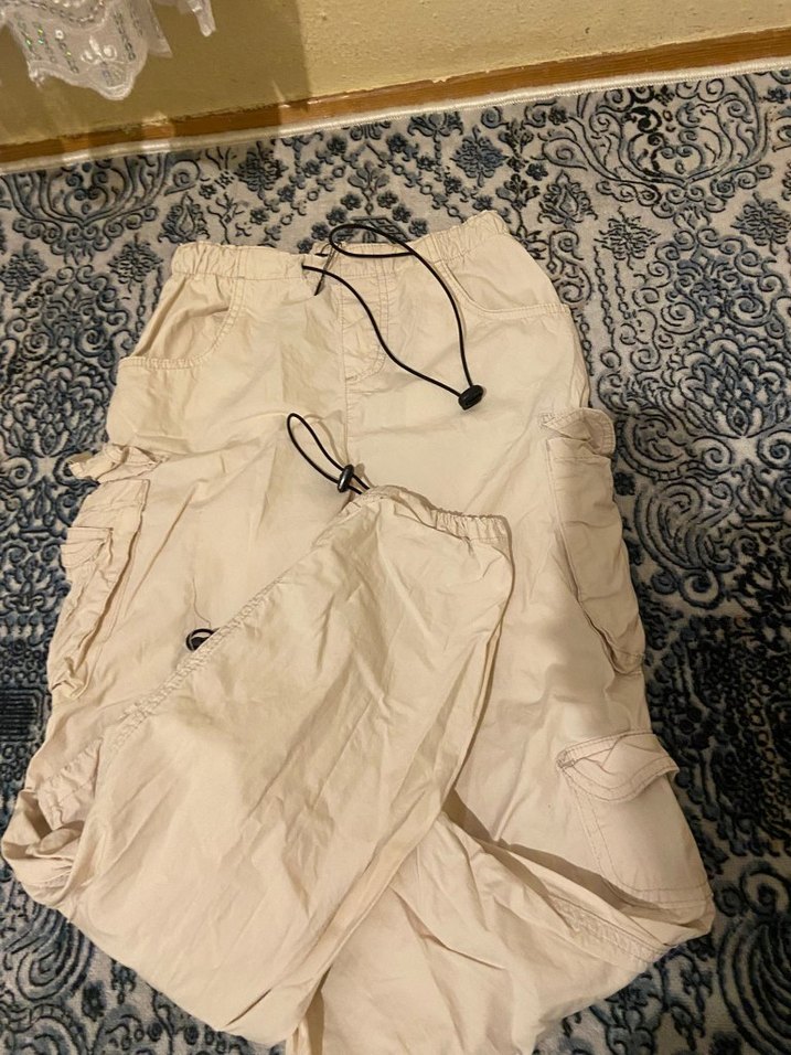 Beyaz Rahat Kesim Kadın Kargo Pantolon