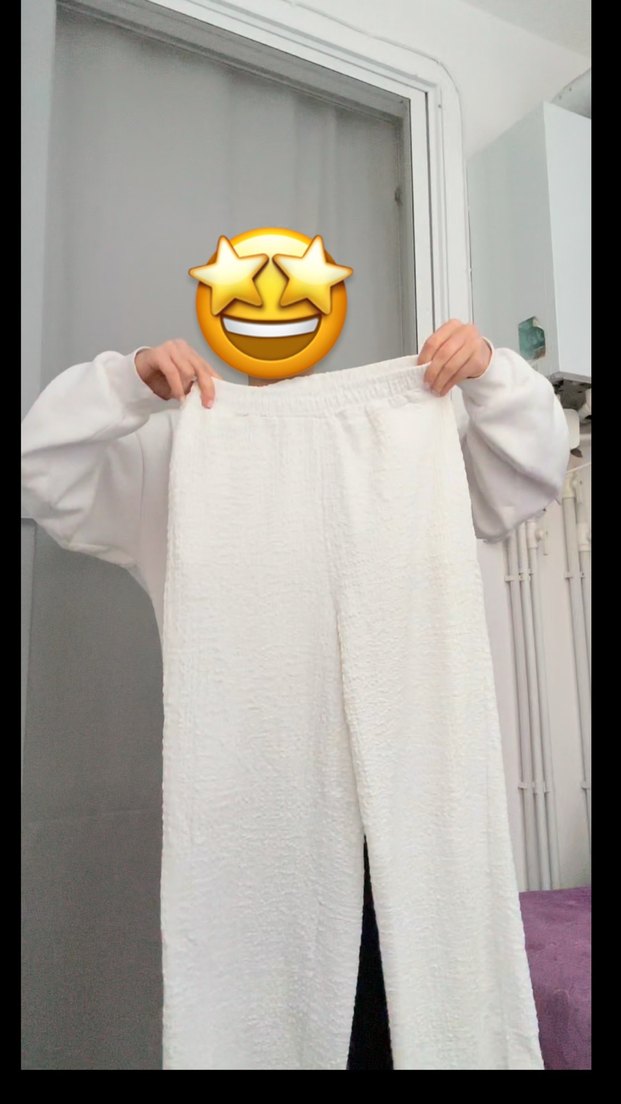 Beyaz, rahat kesim ve normal midi boyda, yumuşak ve sıcak kumaştan üretilmiş kadın pantolonu. Parlak ve desensiz tasarımıyla günlük şıklık sağlar. ✨ üstünde var takım hakinde 2 kez giydim