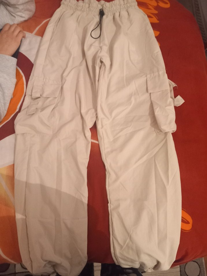 Beyaz Rahat Kesim Kadın paraşüt Pantolon