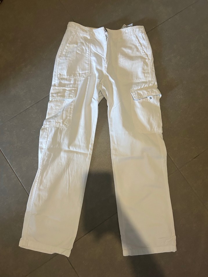 Beyaz Rahat Kesim Kargo Denim Pantolon