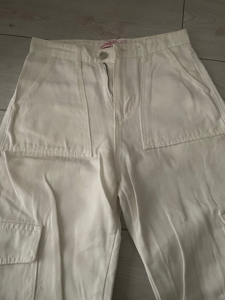 Beyaz Rahat Kesim Midi Kadın Kot Pantolon
