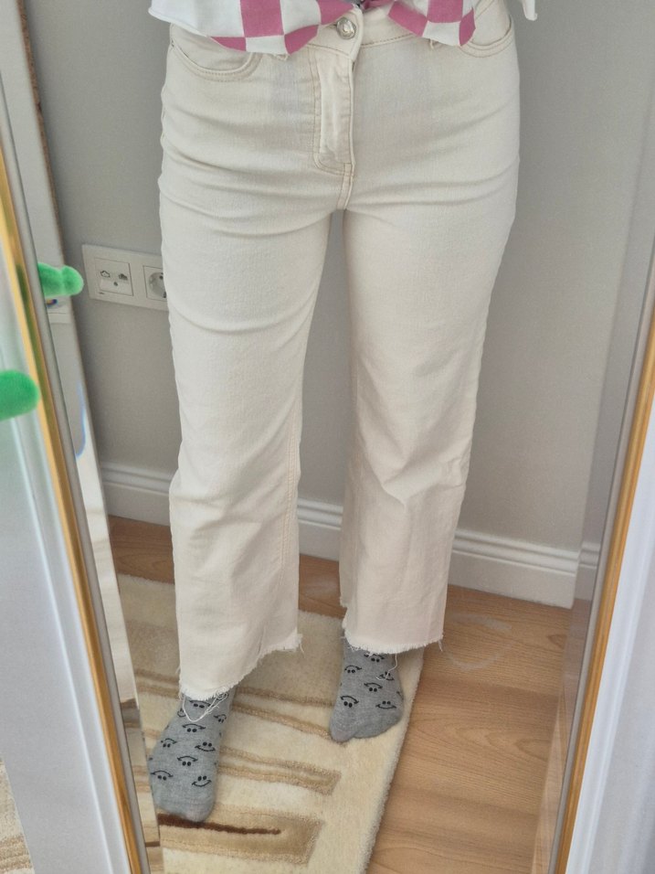 Beyaz Rahat Kesim Midi Kadın Kot Pantolon