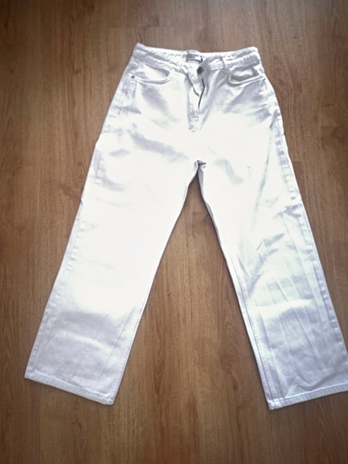 Beyaz, rahat kesim, kot pantolon, günlük kullanıma uygun, zahmetsiz şıklık sunar. Trendy casual tarz için ideal. Mom fit 38-40