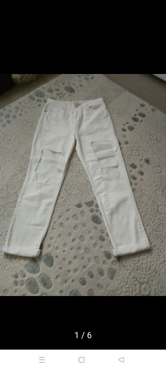 Beyaz pamuklu kot pantolon, rahat kesim ve midi boyda. Sade tasarımıyla günlük kullanıma uygun, zahmetsiz şıklık sunar.