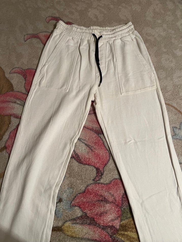 Pamuklu kumaştan, beyaz renkte, rahat kesim ve normal boyda eşofman altı. Günlük kullanıma uygun, sokak stiline uygun şık ve rahat bir model.