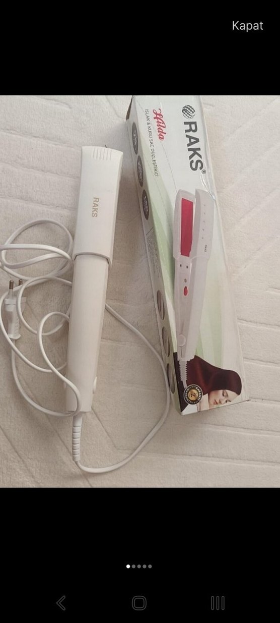 Beyaz RAKS saç düzleştirici, kolay kullanım için kablolu ve basit kontrollerle birlikte hafif tasarıma sahiptir. ✨ uygulamadan almistim. kutusunu attim maalesef. yenisini aldigimiz icin satiyorum. hic bir kusuru yok. mukemmel bir duzluk beklentiniz olmasin ama gunluk kullanim icin gayet iyi