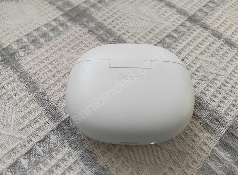 Beyaz Redmi kablosuz kulaklık. Pürüzsüz yüzey ve taşınabilir kompakt tasarıma sahiptir.