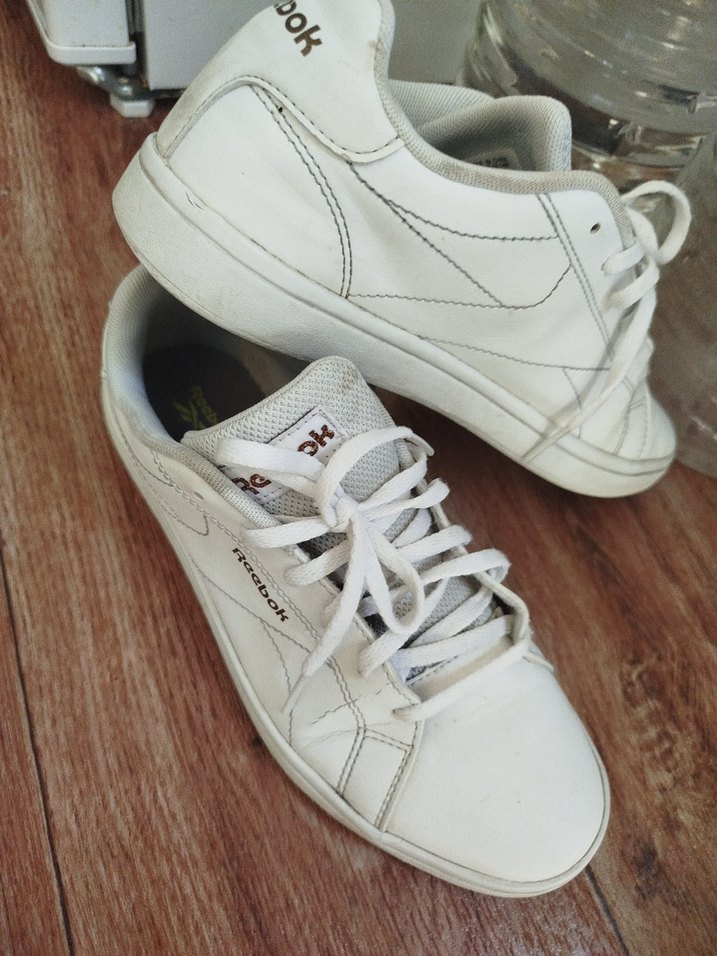 Beyaz renkli, bağcıklı Reebok kadın spor ayakkabısıdır. Kauçuk tabanlı, desensiz ve spor tarz ile günlük kullanıma uygundur.