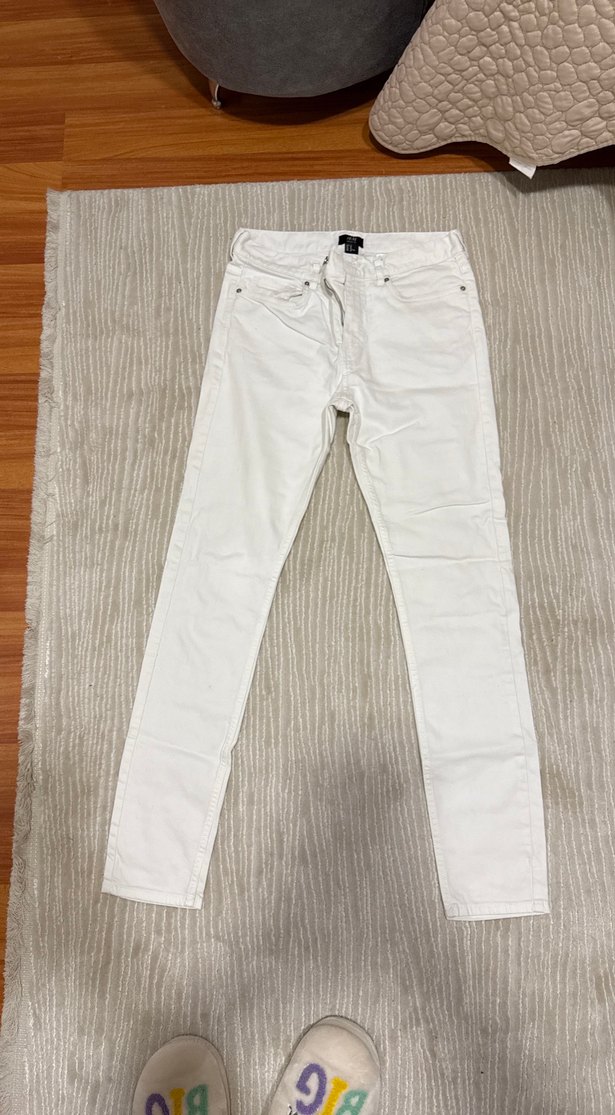 Midi boy, regular fit beyaz denim erkek pantolon. Sokak modasına uygun, günlük kullanıma elverişli, zahmetsiz şıklık sunar. Trendy casual tarz için ideal.