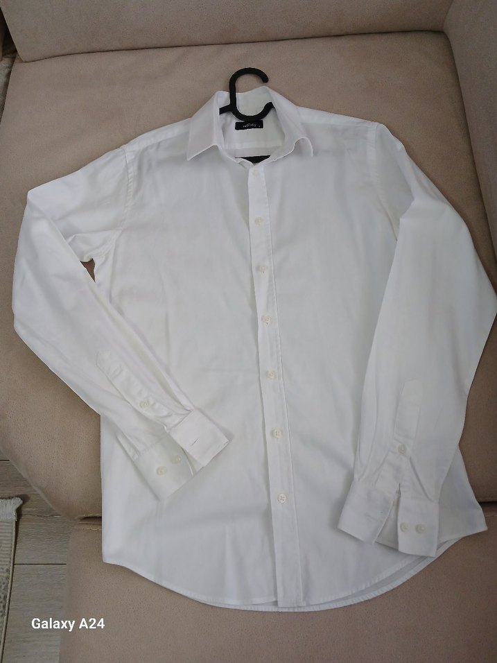 Pamuk kumaştan üretilmiş, düğmeli, beyaz, regular fit erkek gömlek. Ofis kullanımı için uygun, parlak görünümlü, uzun kollu ve yakalıdır.