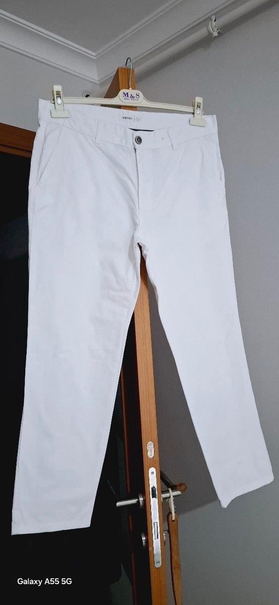Beyaz, regular fit erkek pantolon, normal boyda ve sentetik kumaştan üretilmiştir. Rahat sokak stili ve zahmetsiz şıklık sunar, açık hava kullanımı için uygundur.