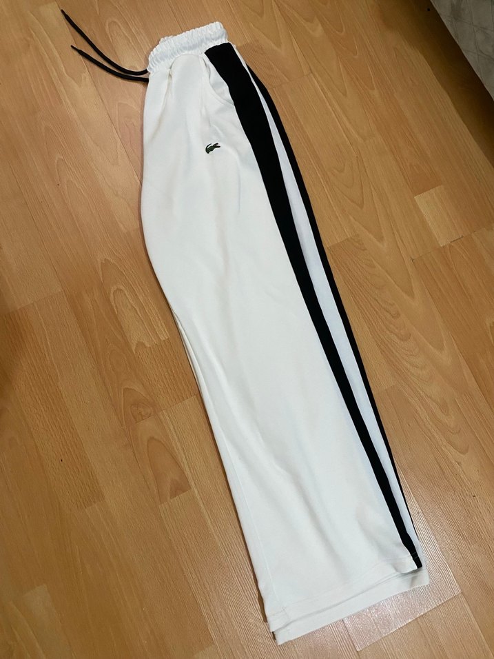 Beyaz renkli, elastik bel bantlı ve siyah yan şerit detaylı regular fit eşofman altı. Yumuşak sentetik kumaştan üretilmiştir, günlük kullanım için uygundur.