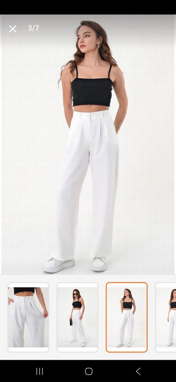 Beyaz keten kumaştan, regular fit ve midi boyda, günlük şıklık için ideal sade tasarımlı kadın pantolonu.