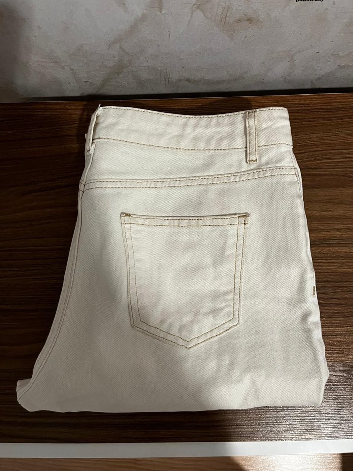 Pamuk kumaştan, normal boyda ve regular fit beyaz kadın kot pantolon. Minimalist ve desensiz tasarımı günlük sokak stiline uygundur, zahmetsiz şıklık sunar.