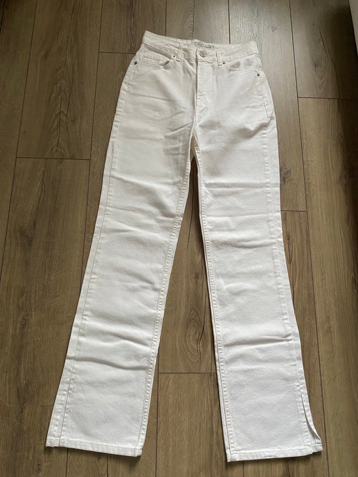 Beyaz pamuklu regular fit midi kot pantolon, desensiz ve sade tasarımıyla günlük sokak stiline uygun, zahmetsiz şıklık sunar.